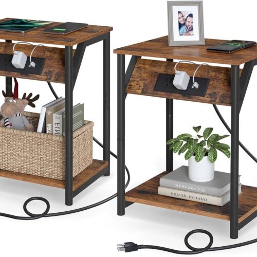 Set of 2 – Nightstand End Tables Charging Station with 2 USB ports