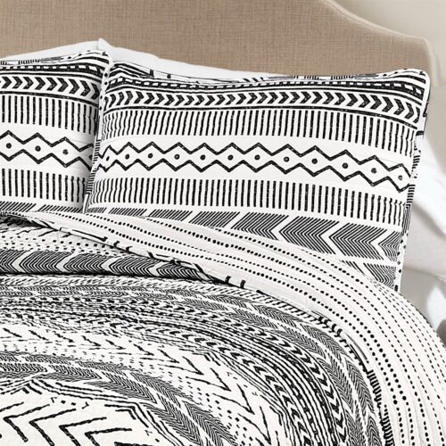 3 Piece Scandinavian Black White Reversible Cotton Set in Full/Queen