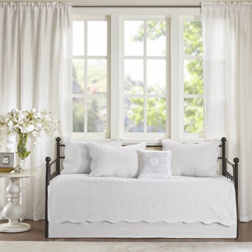6-Piece Farmhouse White Daybed Cover Bedding Set with Scalloped Edges