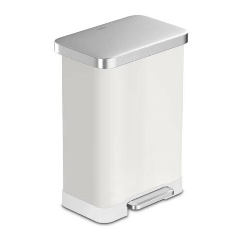 White 20-Gallon Stainless Steel Kitchen Trash Can with Step-on Lid