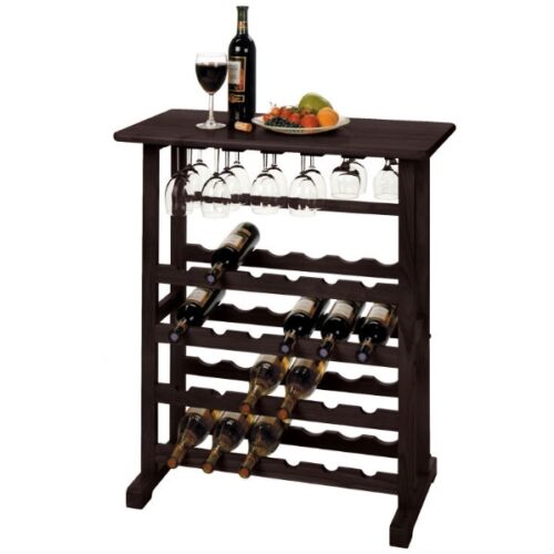 Black/Brown Wine Rack Kitchen Bar Storage Cabinet Shelf with Glass Holders