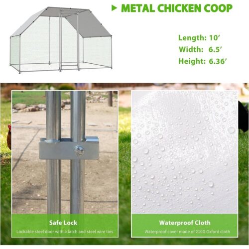- 10-Ft x 6.5-Ft Outdoor Walk-in Metal Chicken Coop with Water-Resistant Cover