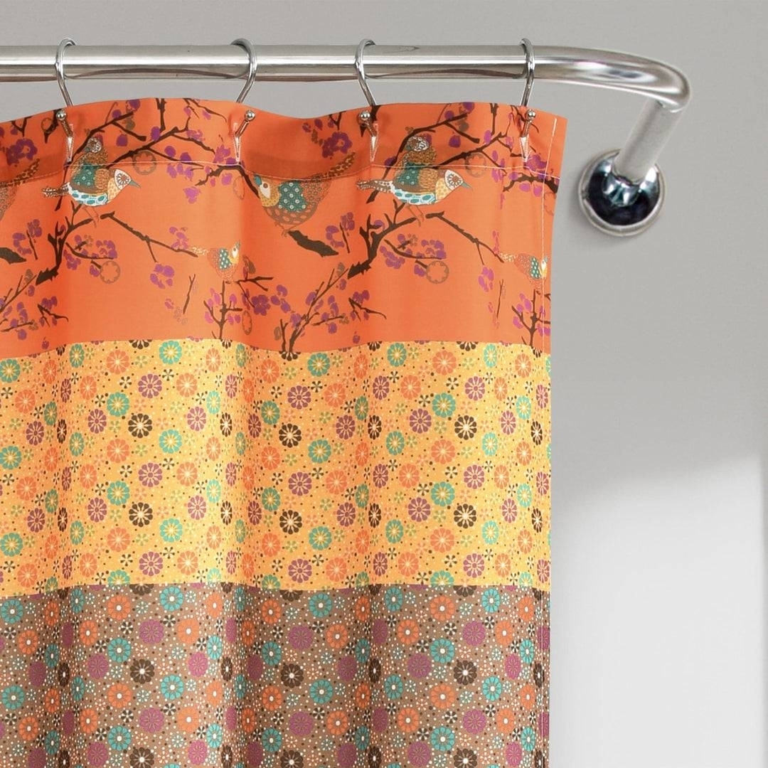 72-inch Orange Teal Floral Damask Boho Birds Polyester Shower Curtain