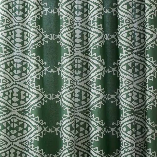 - 72 x 72 inch Cotton Poly Shower Curtain with Green White Geometric Motif Pattern