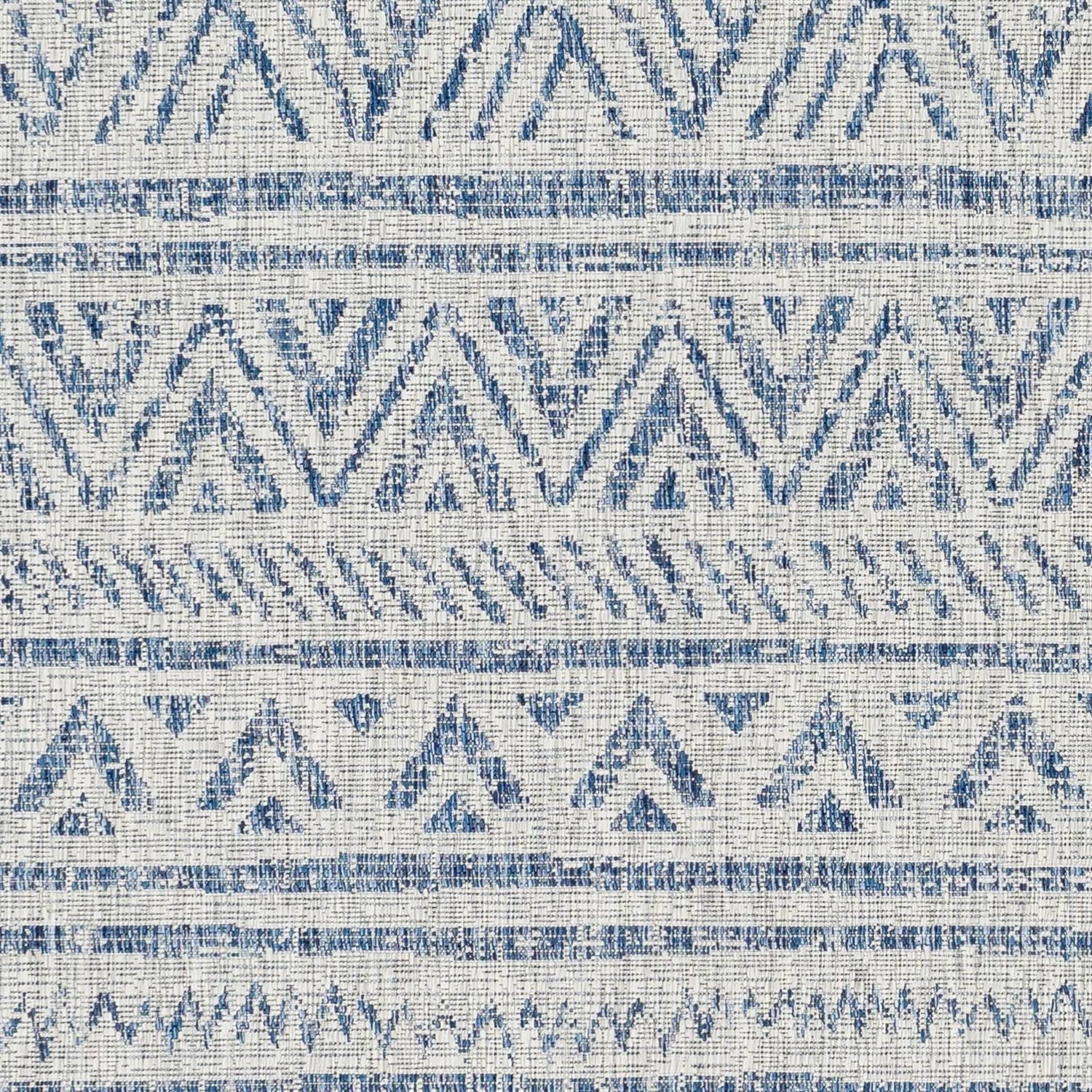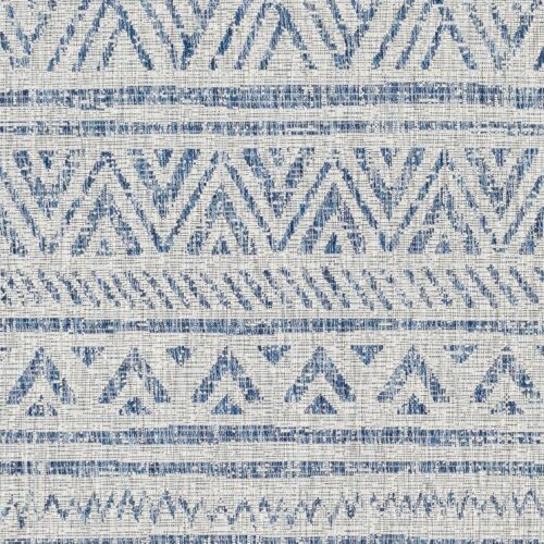 - 8 ft. x 10 ft. Blue Grey Chevron Coastal Boho Style Indoor Outdoor Area Rug