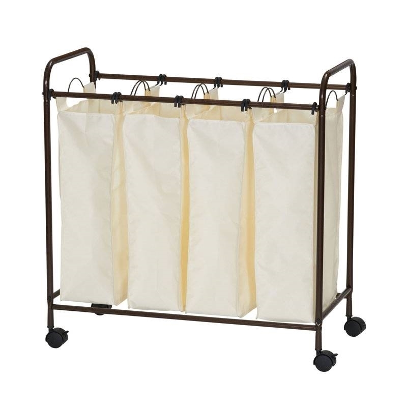 Farmhouse 4 Section Removeable Bag Wheeled Laundry Sorter Cart