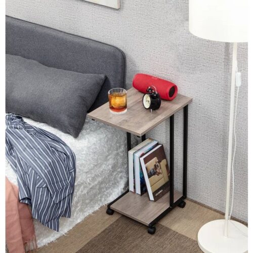 Modern Industrial Style Metal Wood TV Tray Bedside Table with Removable Casters