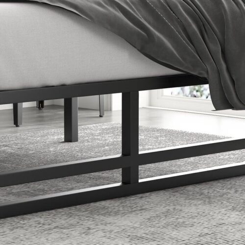 - Full Modern White Upholstered Platform Bed Frame with Sleigh Curved Headboard