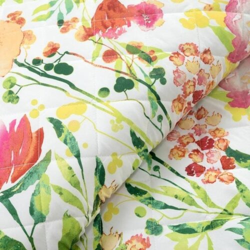 Brighten your bedroom with the floral pattern of our Watercolor Scallop Edged Floral 3 Piece Quilt Set. This bright watercolor print embodies the spirit of spring and summer with a gorgeous array of blooming botanicals. This floral quilt set is a great addition to your primary or guest bedroom. The scalloped edge featured in this Watercolor Scallop Edged Floral 3 Piece Quilt Set mirrors the shape of the blooming flowers printed on the front of the quilt, adding charm and texture to your space. The back of the Watercolor Scallop Edged Floral 3 Piece Quilt Set is a yellow diamond geometric print. The reversible nature of this bedding set allows you to switch up the look in your space as often as you like, simply by flipping it over to the other side. This microfiber bedding set offers softness and breathability. The polyfill is perfect for hot sleepers and great as an extra layer for those cold sleepers who layer-up to keep warm. Add this beautiful botanical bedding set to your cottage or farmhouse styled home. This Watercolor Scallop Edged Floral 3 Piece Quilt Set includes 1 quilt and 2 standard pillow shams. This item is OEKO-TEX Standard 100 certified.