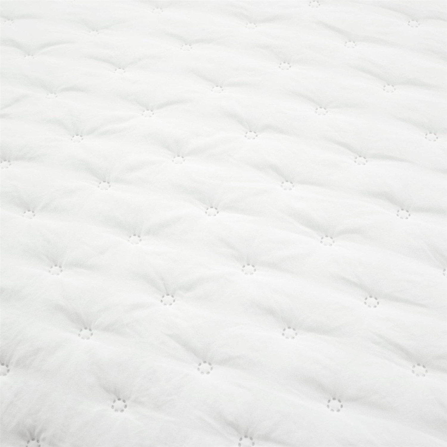 This Lightweight White Ruffle Reversible Oversized 3 Piece Quilt Set has cozy cottage style with a chic flair. Soft crinkled fabric and quilted tufting create an unmatched texture you’ll love to cozy up in. Airy ruffles edge the quilt and two matching shams, giving a feminine touch. The lightweight poly fill ensures all season comfort. Add this delightful Ruffle Reversible Oversized 3 Piece Quilt Set to your primary, guest, or teen’s bedroom to complete your charming personal style. The quilted detailing across the fabric adds dimension and extra comfort. You’ll love the ruffled edges that give this set extra pizazz. This Ruffle Reversible Oversized 3 Piece Quilt Set includes a soft and luxurious quilt and two matching pillow shams. The pillow shams also have the ruffled edges!