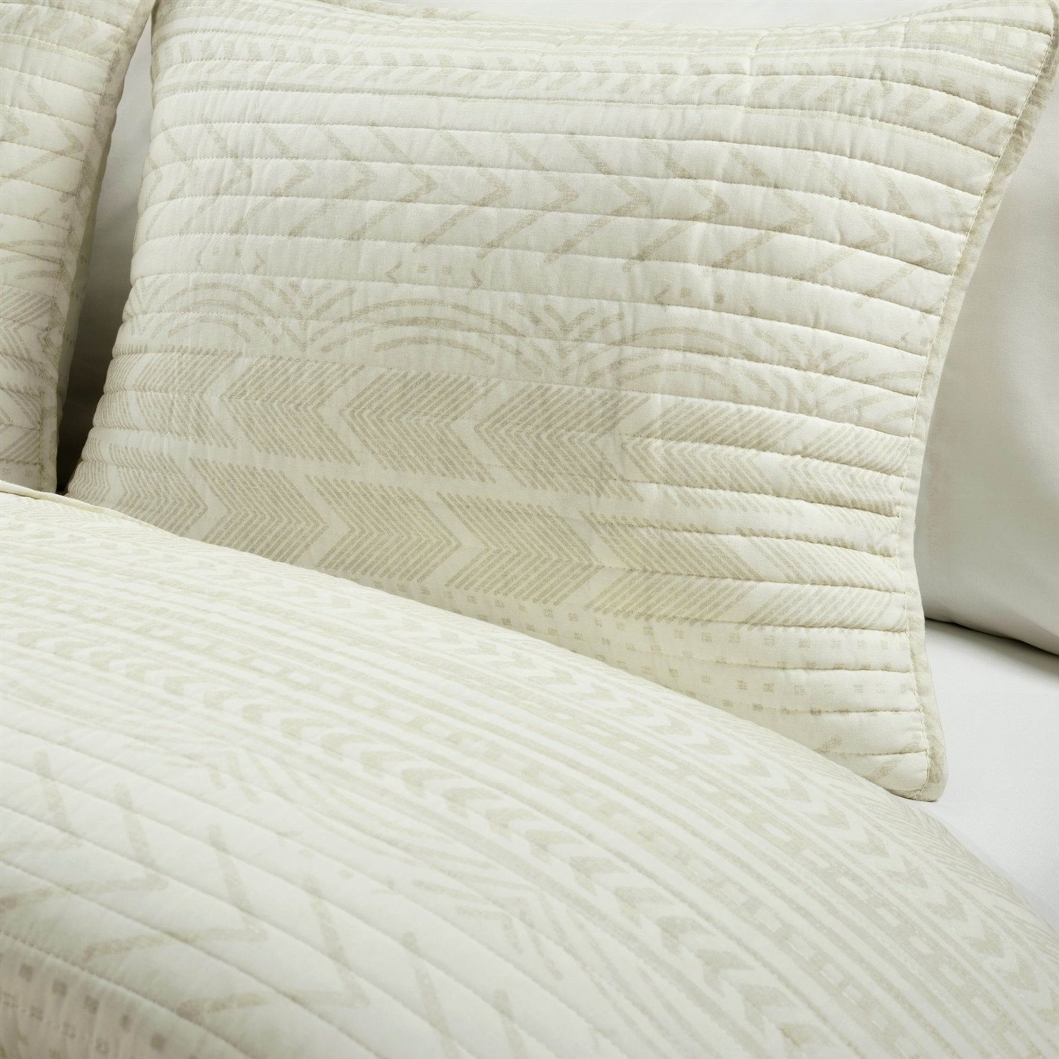 Full/Queen Scandinavian Chevron Ivory Beige Reversible Cotton Quilt Set