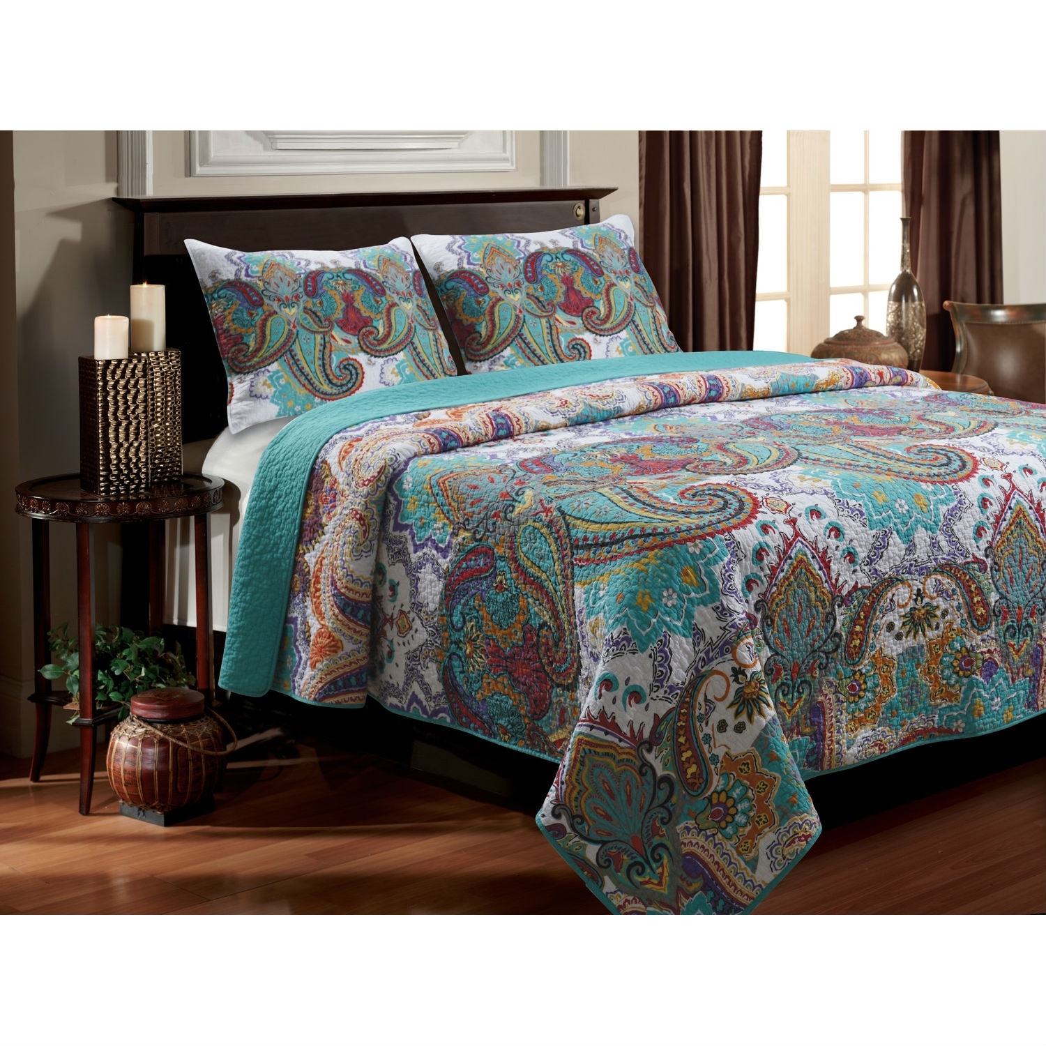 - Full / Queen Teal Paisley 3-Piece Quilt Set in 100-Percent Cotton