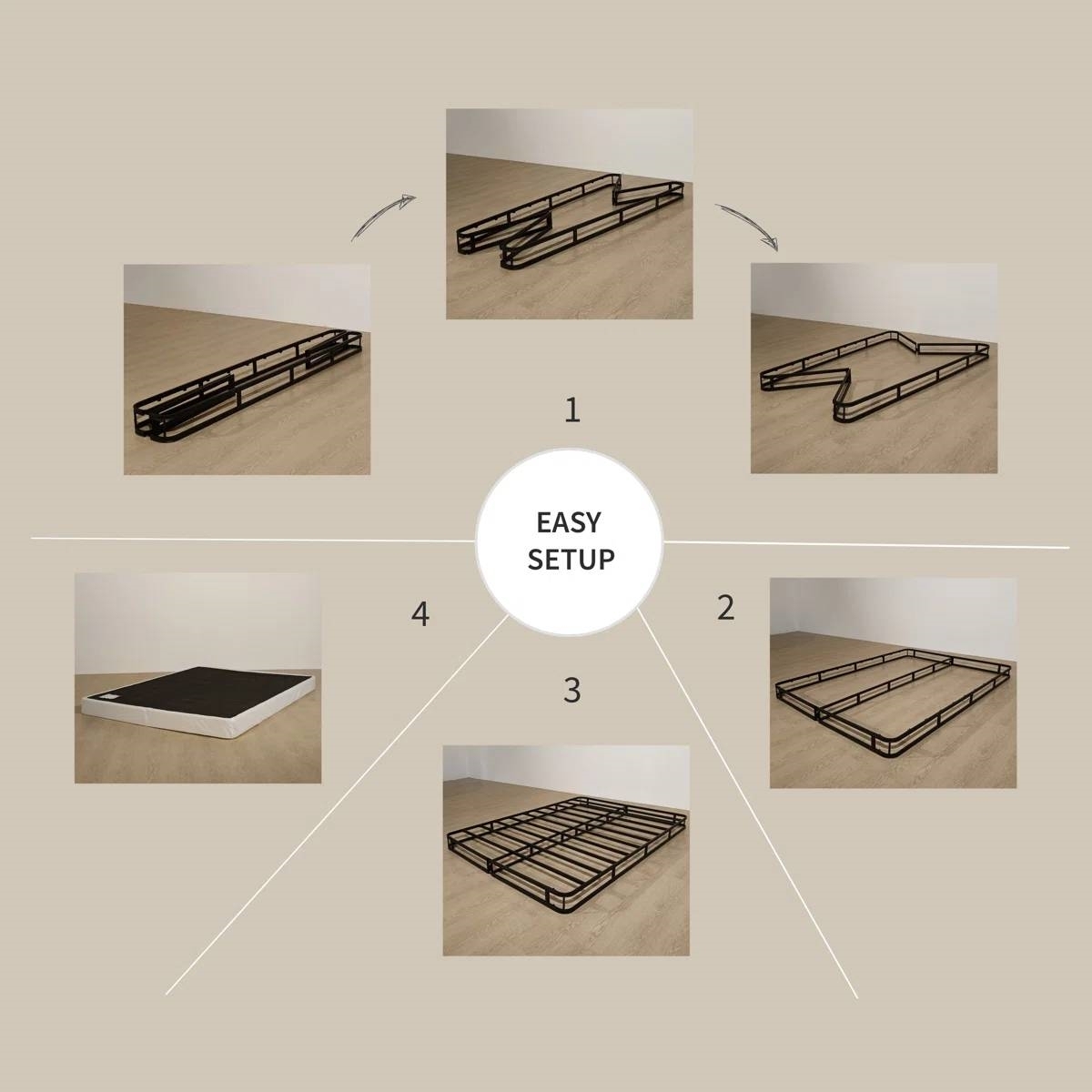 A crucial component of your bed setup, the right foundation is just as essential as your mattress. Our carefully designed Full size 8-inch Metal Frame Box-Spring Mattress Foundation with Cover offers exceptional support under any mattress. This box spring is the perfect base for your mattress, ensuring a peaceful and comfortable slumber. It is incredibly easy to assemble, making it a convenient addition to your bedroom. Rounded corners are friendly to your beautiful beds. Foldable for quick-easy assembly and portability everywhere.