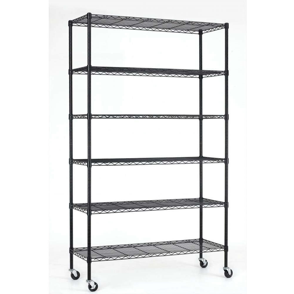 Heavy Duty 6-Shelf Adjustable Metal Shelving Rack with Casters