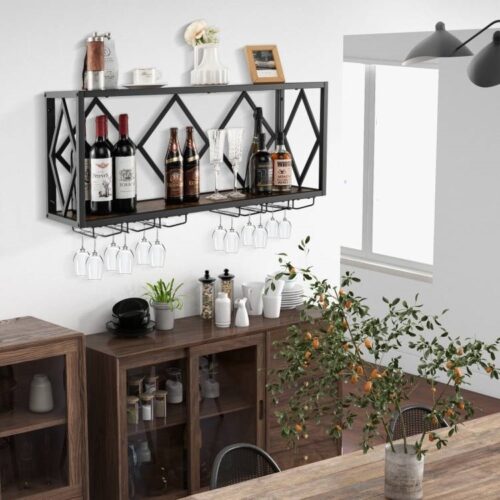 Be the first to review “Industrial Rustic Brown Wood Metal Wall Mounted Wine Rack Shelf” Cancel reply