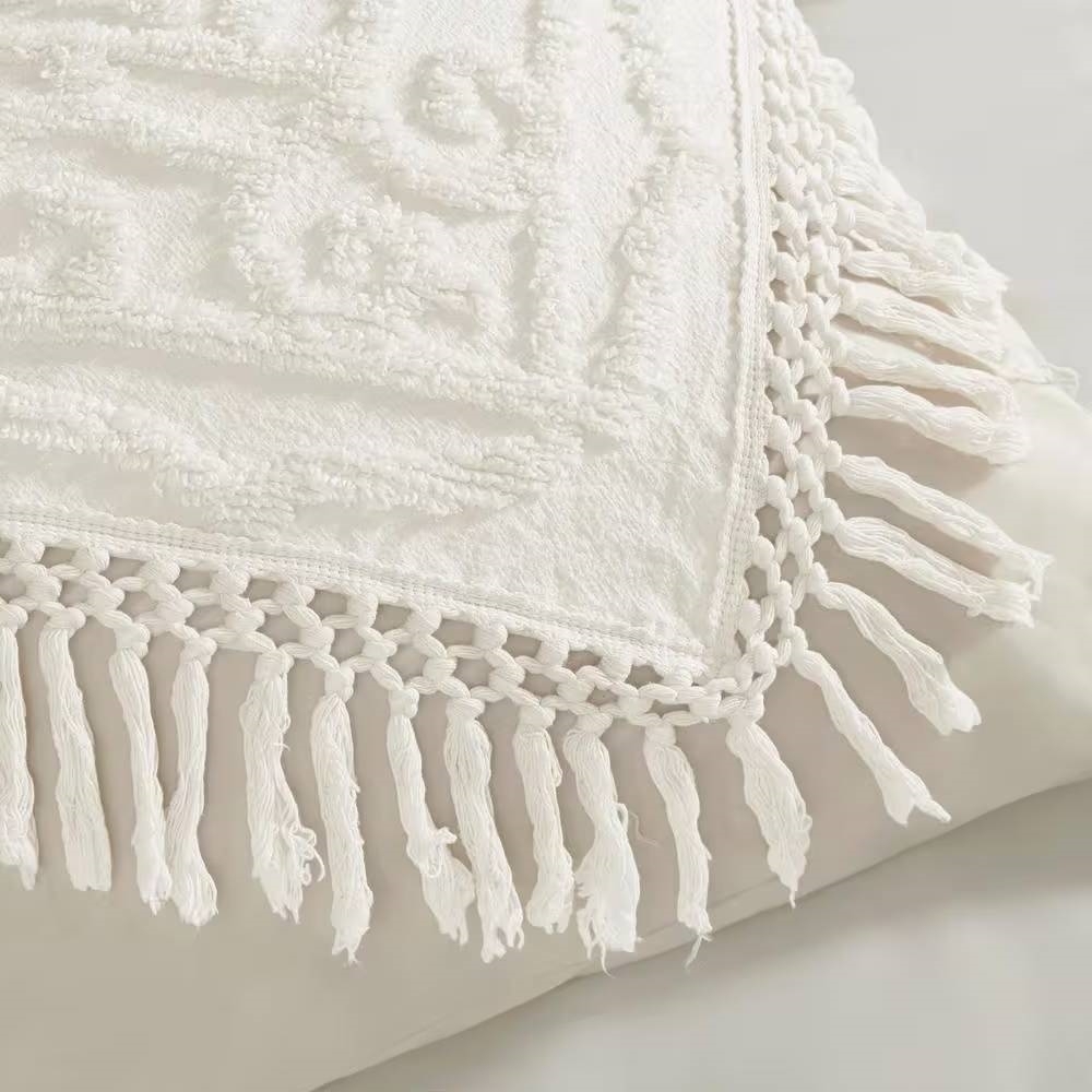 - King 100-Percent Cotton Chenille Bedspread with Fringe Hem in Off-White