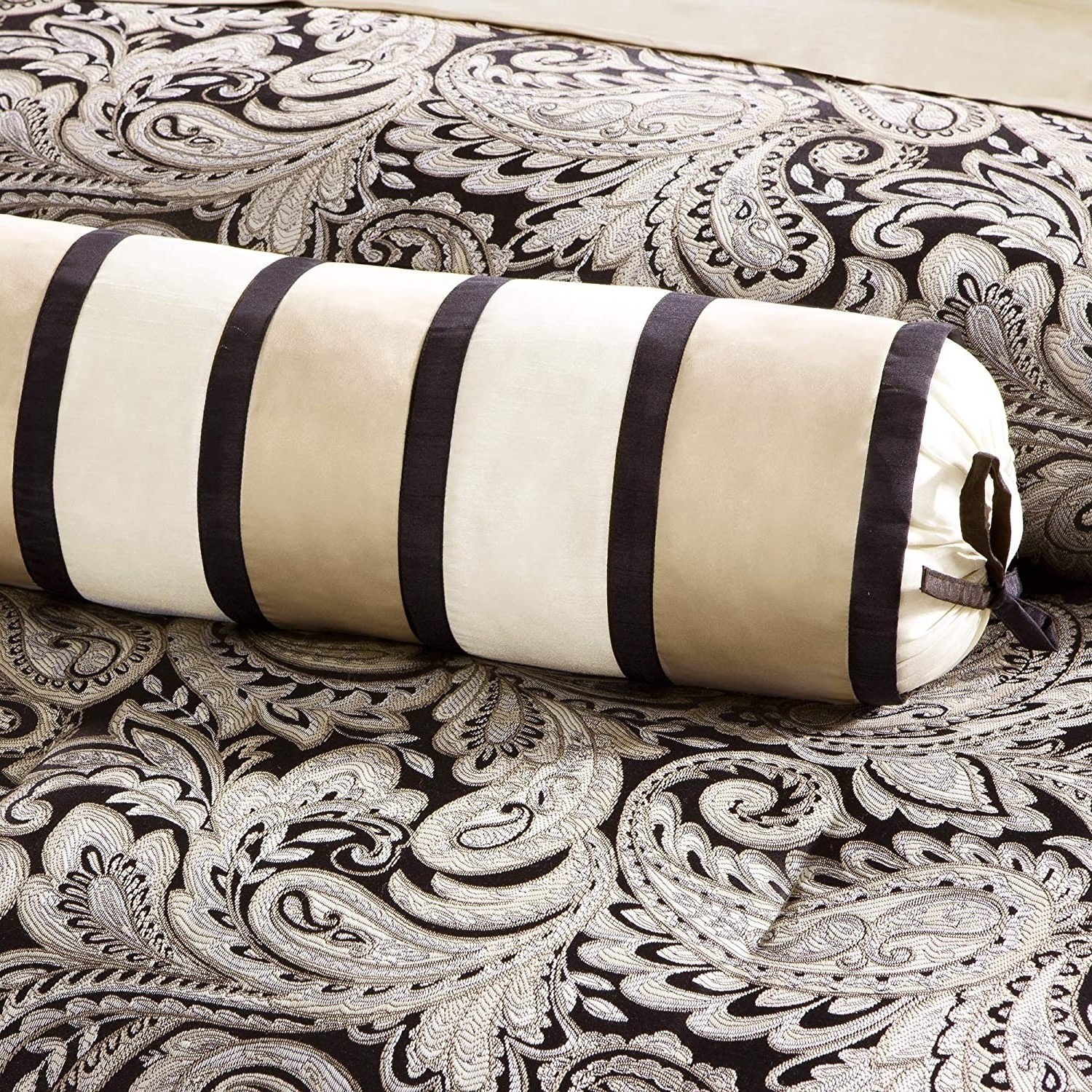King 12 Piece Cotton Polyester Comforter Set Black Gold Paisley