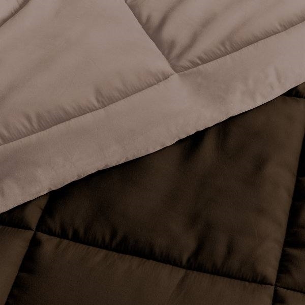 Elevate your bedroom or guest room with this classic King/Cal King 3-Piece Microfiber Reversible Comforter Set Light / Dark Brown. We love that this set comes in a range of colors, so you can find just the right look for your space. Its also reversible, so you can switch up your look with ease. All pieces are made of 100% microfiber, which is lint-free, non-pilling, and resistant to wrinkles; theyre also machine washable, so keeping everything fresh and clean is a breeze. The comforter and shams are filled with 5.31 oz. fill weight polyester in a solid hue with a baffle box weave.