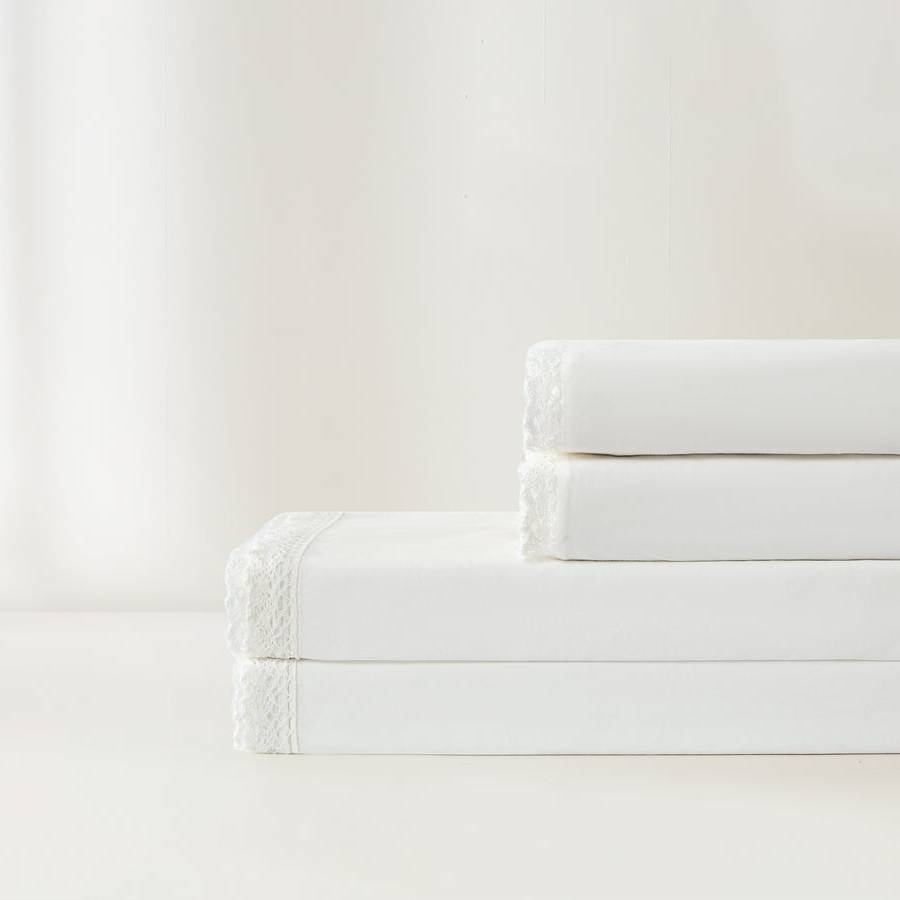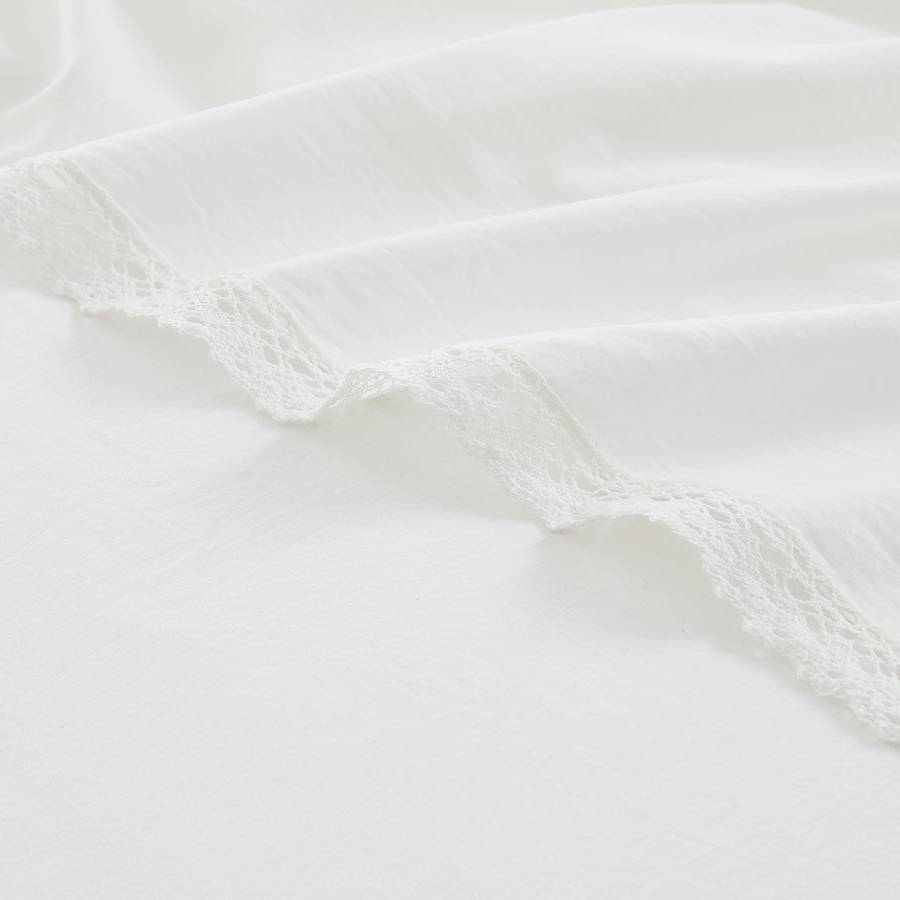 King Size 4 Piece 100-Percent Cotton Sheet Set in White with Lace Trim