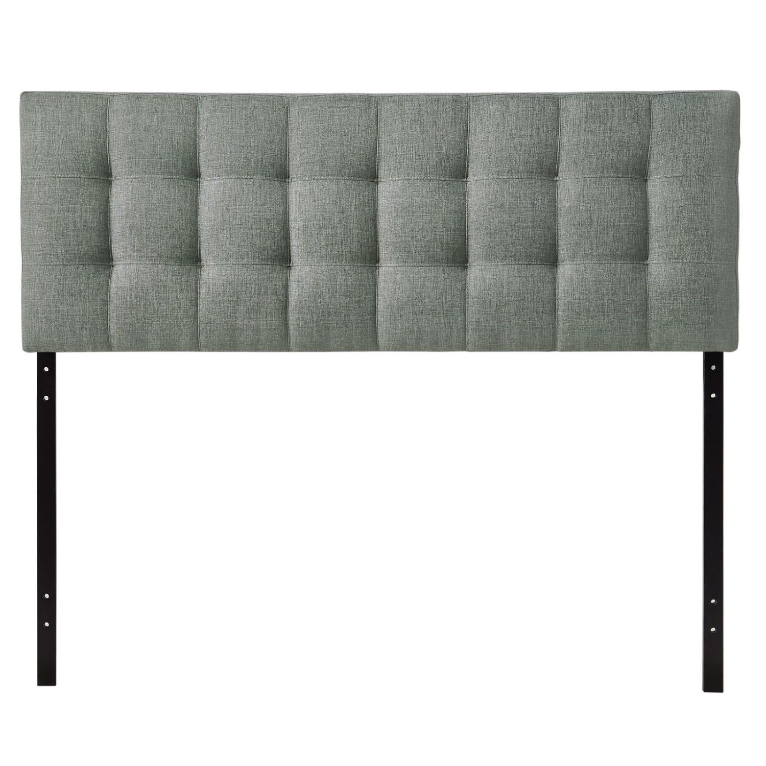 Introduce some boxy pizazz with the lavish design of this King size Grey Fabric Modern Button-Tufted Upholstered Headboard. Intended to be versatile for a wide range of modern bed styles, it’s deep button tufting, and carefully aligned trim, present a uniform piece meant to cast prominence upon your room. Fully upholstered in padded fabric, it has a narrow piece meant to convey a strong sense of expansiveness within your entire surroundings. Set Includes: One – Headboard Product Dimensions: Overall Product Dimensions: 3.5″L x 61.5″W x 22.5″H Bedframe Mounting Location: 4.5 – 8.5″H Mounting Location A – Height to Top of Headboard: 52.5″H Mounting Location A – Height to Bottom of Headboard: 30.5″H Mounting Location B – Height to Top of Headboard: 50″H Mounting Location B – Height to Bottom of Headboard: 28″H Mounting Location C – Height to Top of Headboard: 47.5″H Mounting Location C – Height to Bottom of Headboard: 25.5″H Mounting Location D – Height to Top of Headboard: 45″H Mounting Location D – Height to Bottom of Headboard: 23″H Floor to Top of Headboard: 45.5 – 53″H Floor to Bottom of Headboard: 23 – 30.5″H.