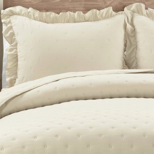 Twin / Twin XL size Quilted Coverlet Set with One Pillow Sham in Ivory