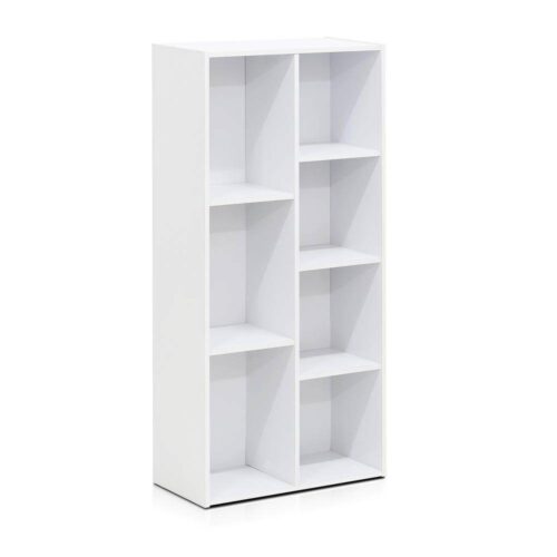 - Modern 42-inch High Bookcase with 7 Open Shelves in White Wood Finish