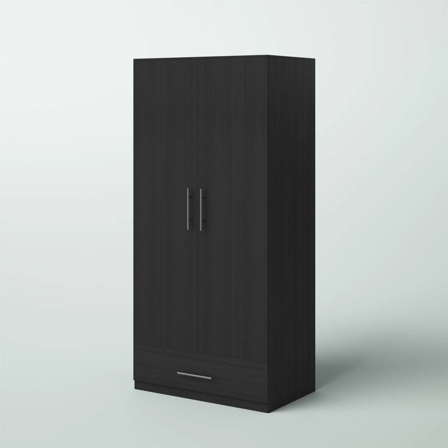 - Modern Armoire Wardrobe Closet Cabinet with Storage Drawer in Black Wood Finish
