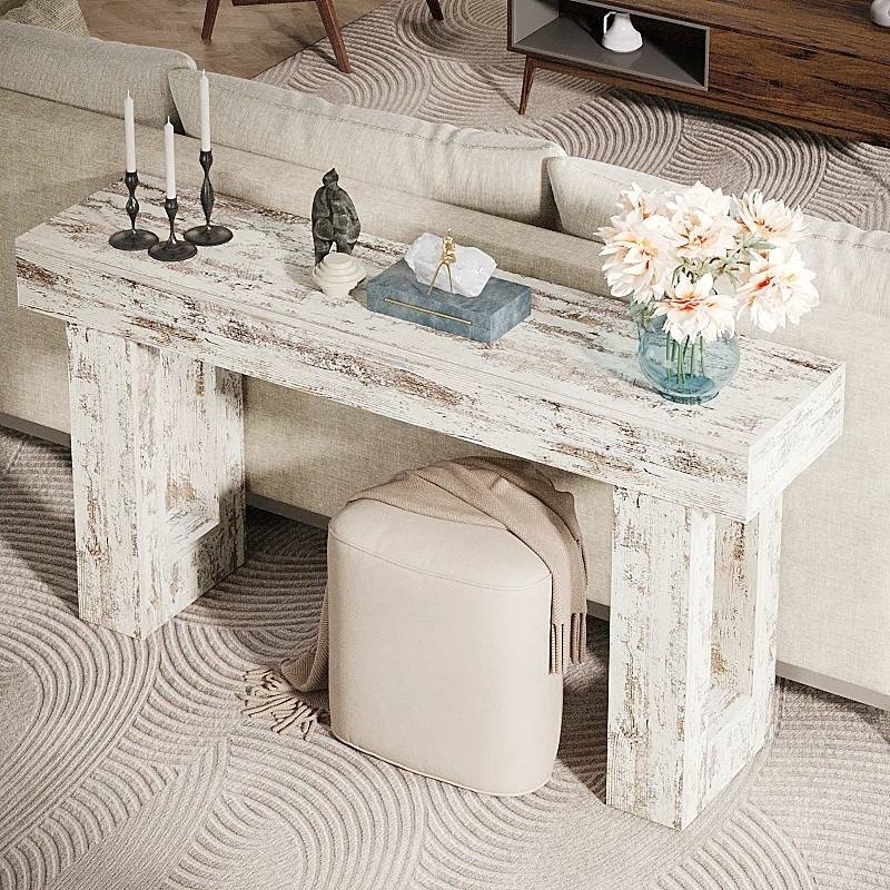- Modern Farmhouse 63-inch Console Sofa Table in Rustic White Wood Finish