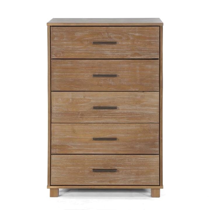 Modern Farmhouse Solid Wood 5 Drawer Bedroom Chest in Pine Finish