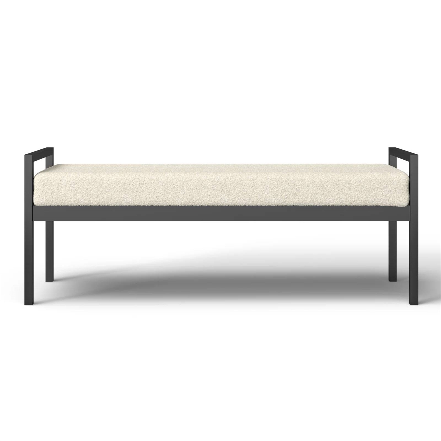 - Modern Industrial Bed Bench with Black Metal Frame and Cream Upholstered Cushion
