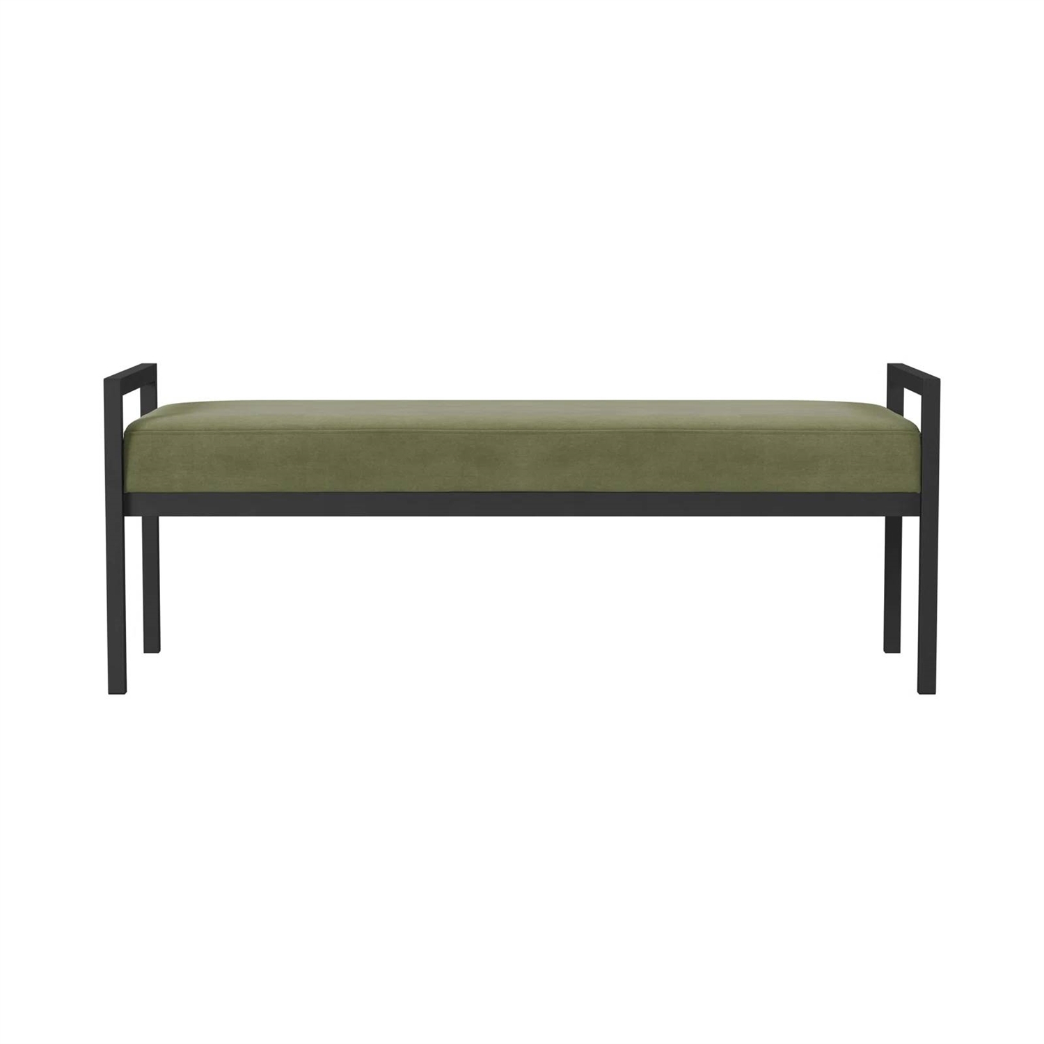 - Modern Industrial Bed Bench with Black Metal Frame and Sage Green Velvet Cushion