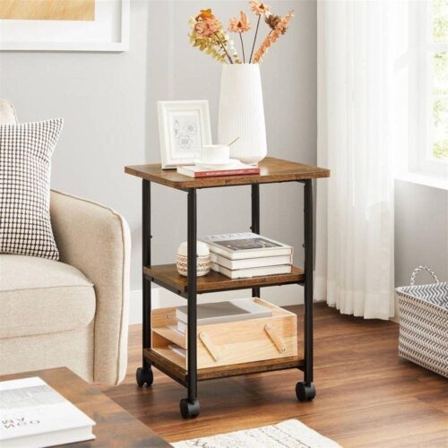 - Modern Industrial Black Metal Rustic Wood Printer Stand Cart on Locking Casters