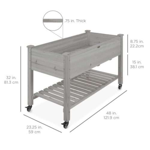 All of your garden needs in one place! This Grey Locking Wheels Raised Mobile Garden Elevated Wood Planter is Built with a set of locking wheels to move the planter from place to place and capture the right amounts of sun and shade. It’s ergonomic structure stands 30 inches tall, making it perfect for those who struggle to bend down or lean over while gardening. Also, comes with a garden bed liner that separates wood from the soil, keeping planter in excellent condition and preventing weeds and pests from interfering with plant growth. Great for maximizing space and has 4 drainage holes to allow wood from the soil, keeping planter in excellent condition and preventing weeds and pests from interfering with plant growth. Assembly is easy and takes less than 30 minutes.