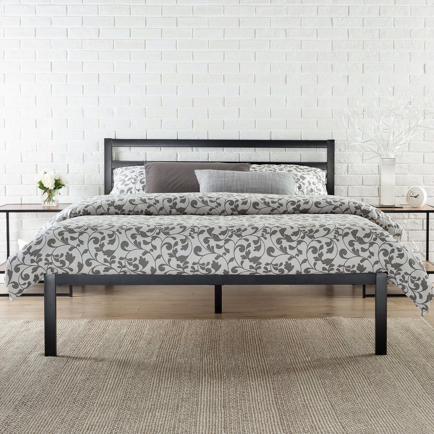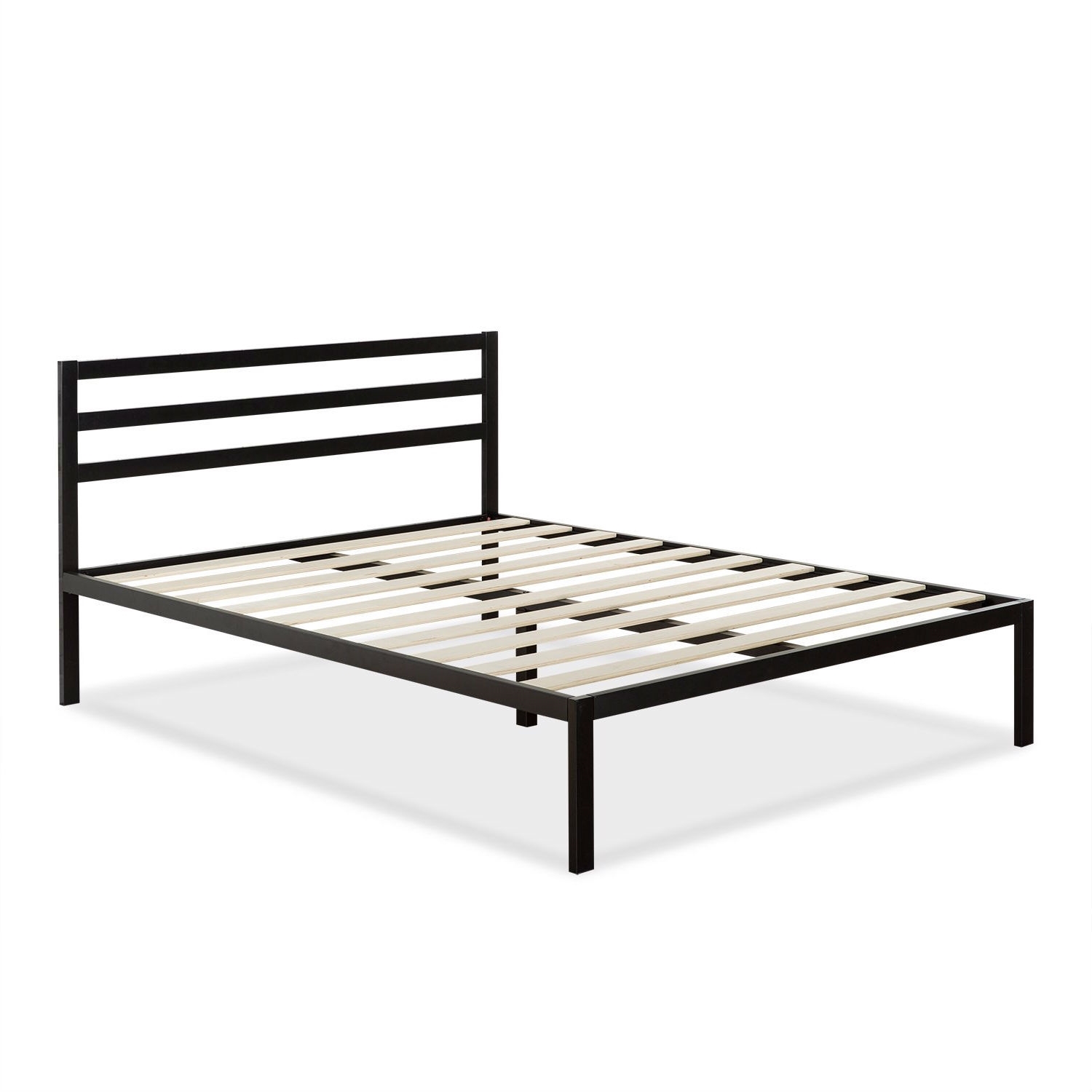 - Queen Metal Platform Bed Frame with Headboard and Wood Slats