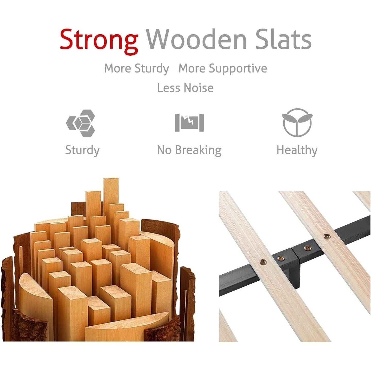 - Wooden slat support system eliminating the need for a box spring