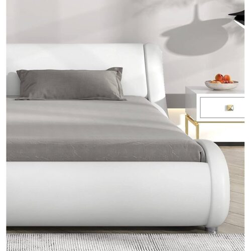 - Queen Modern White Faux Leather Upholstered Platform Bed Frame with Headboard