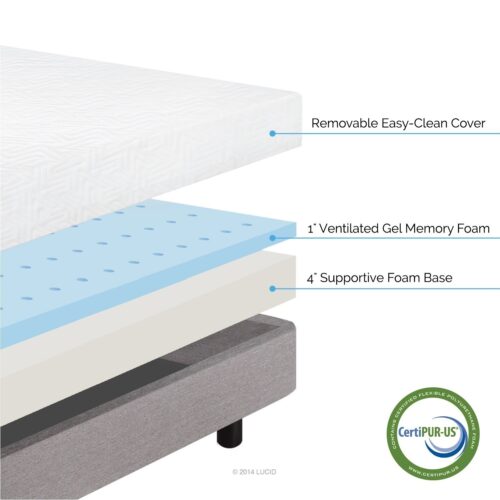- Mattress layers: 3″ memory foam, 2″ Super Soft Foam with pressure relief system and 5″ high density foam