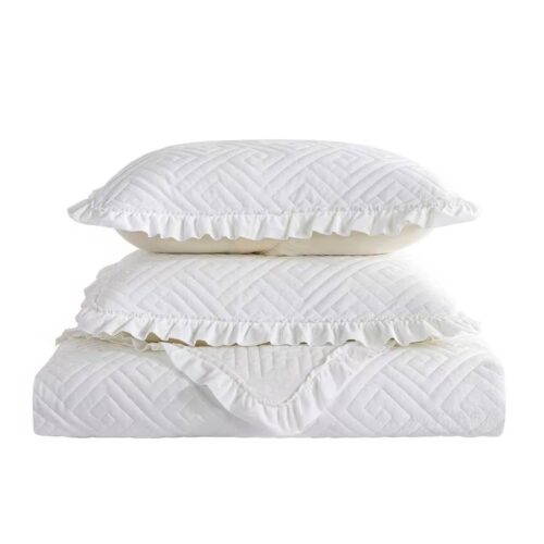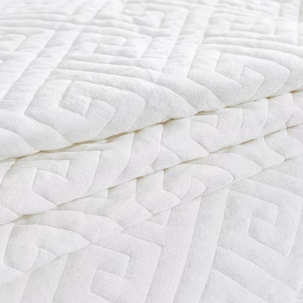 - Queen size Ivory White Velvet Microfiber Polyester Reversible 3-Piece Quilt Set