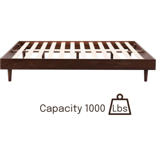 - Queen size Mid-Century Modern Platform Bed Frame in Dark Brown Wood Finish