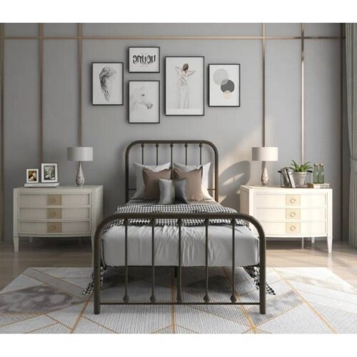 - Queen size Taupe Beige Upholstered Platform Bed Frame with Headboard