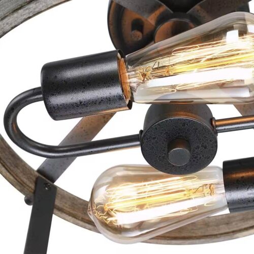 - Round 13-inch Metal Wood Farmhouse 2-Light Ceiling Lamp – Semi-Flush Mount