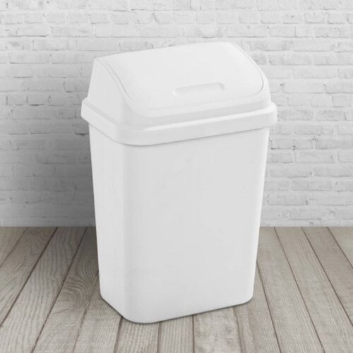 Set of 6 – White 7.8 Gallon Swing Top Kitchen Wastebasket Trash Can