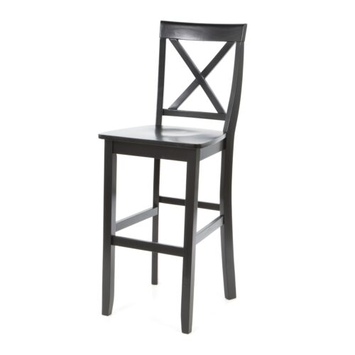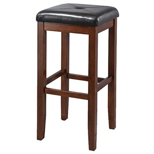 - Set of 2 – Black Bar Stools 24-inch High w/ Cushion Faux Leather Seat