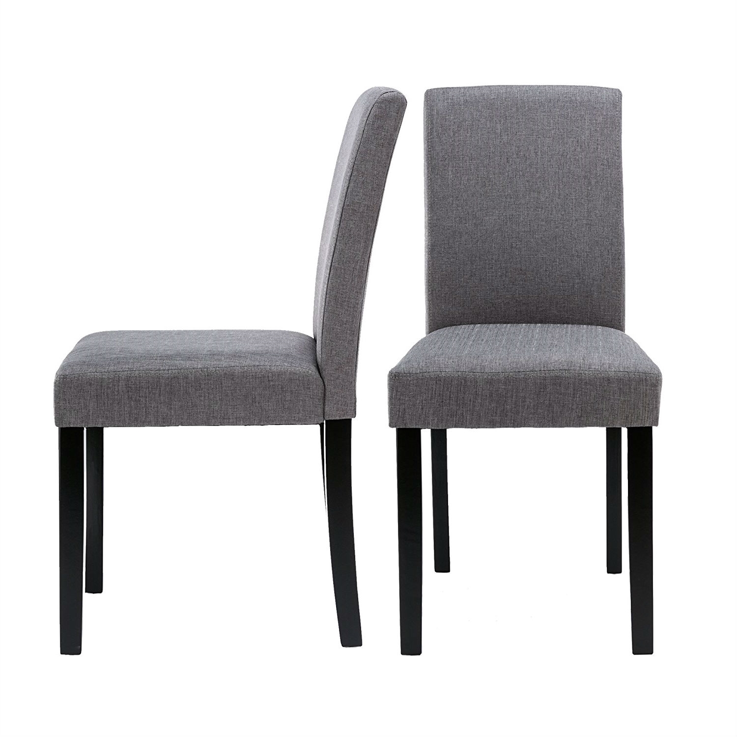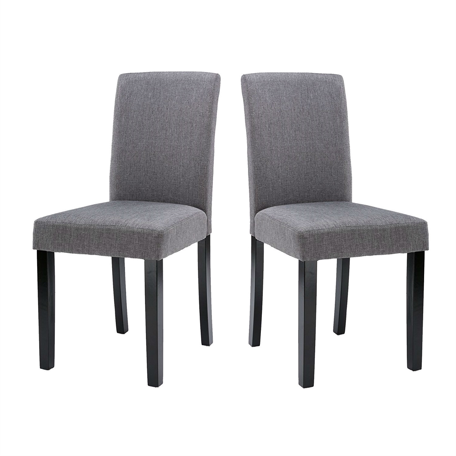 - Set of 2 – Grey Fabric Dining Chairs with Black Wood Legs