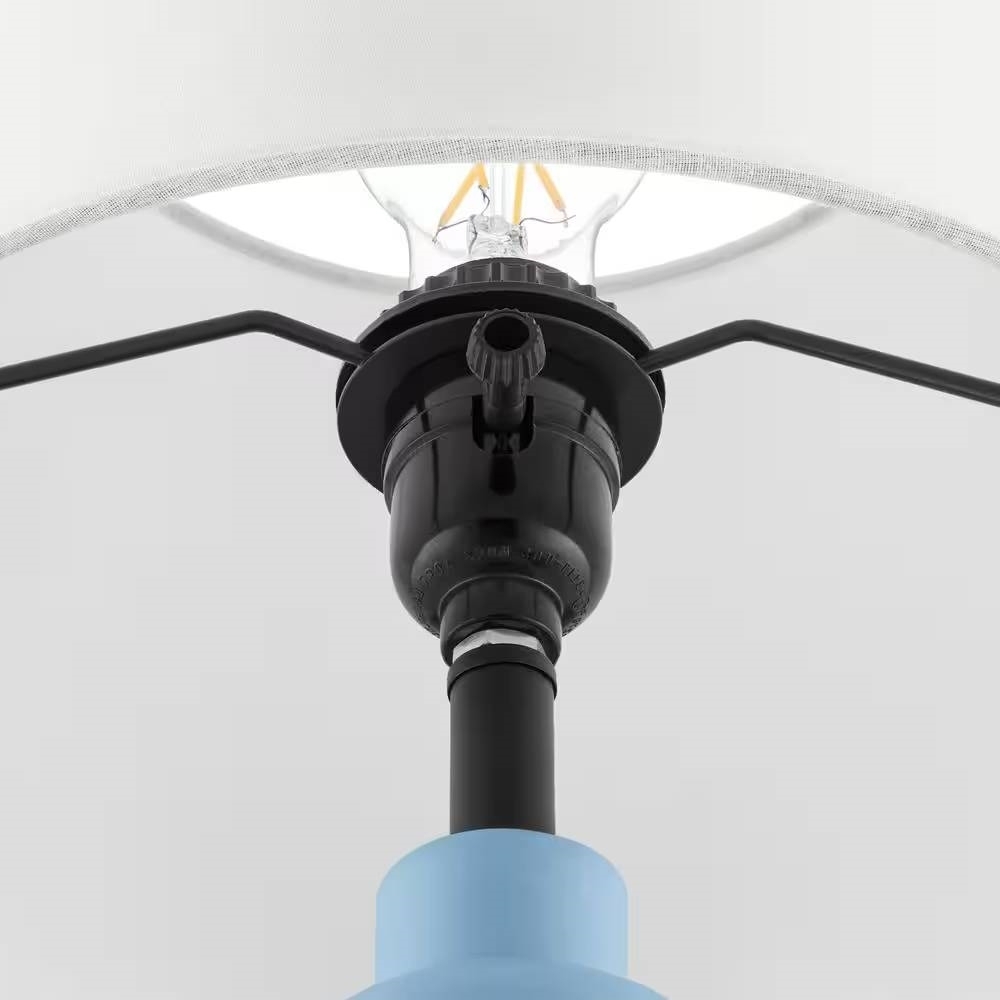 - Small Blue Desk Light Table Lamp with White Fabric Shade for Bedside Nightstand
