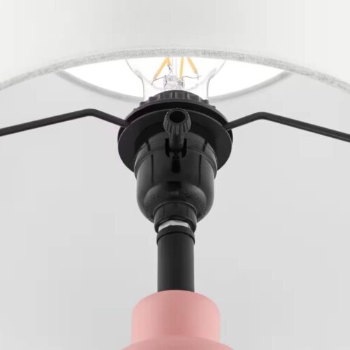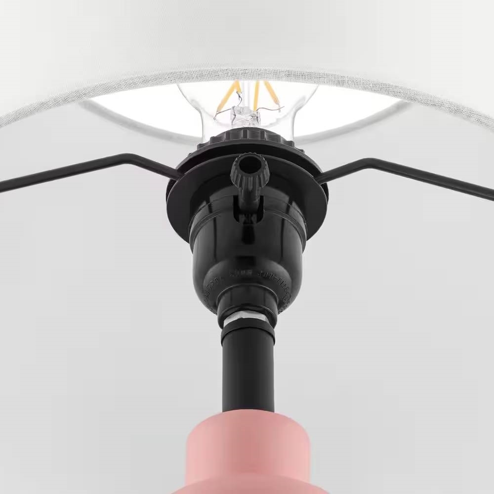 - Small Pink Desk Light Table Lamp with White Fabric Shade for Bedside Nightstand
