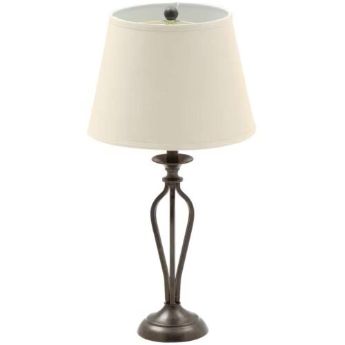 - Traditional Bronze Metal Finish Table Lamp with Beige Linen Shade