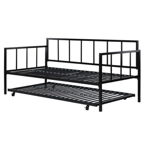 - Twin size Heavy Duty Metal Daybed with Roll-Out Trundle Bed