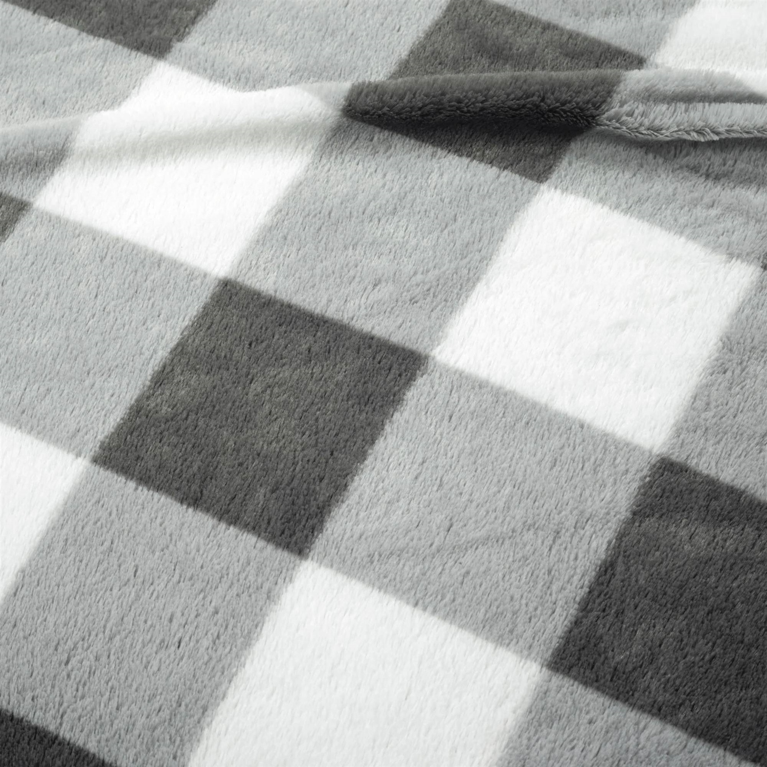 Twin Size Plaid Soft Faux Fur Comforter Set in Black White Grey