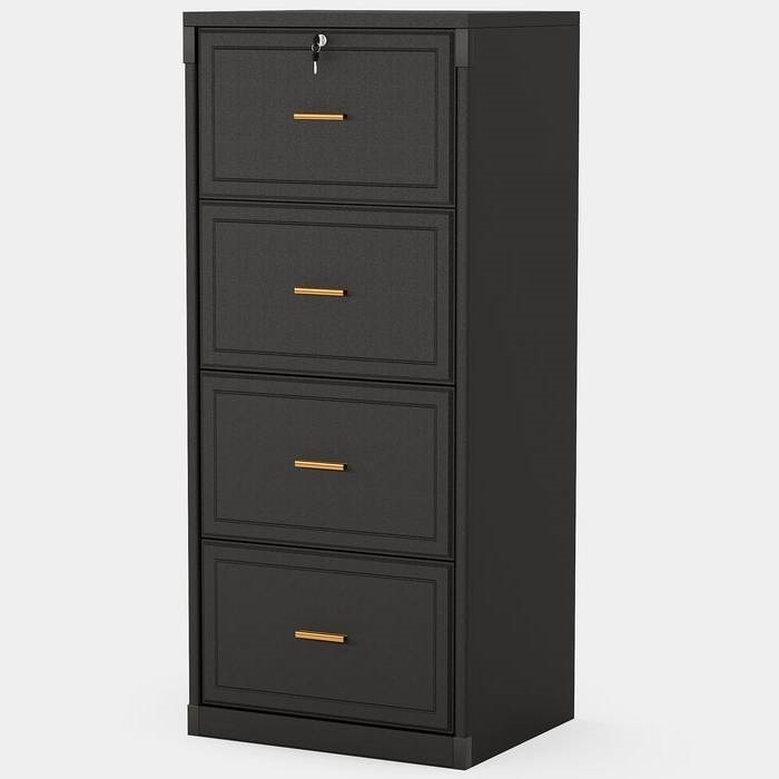 Vertical File Cabinet in Black Wood Finish with 4 Lockable Storage Drawers